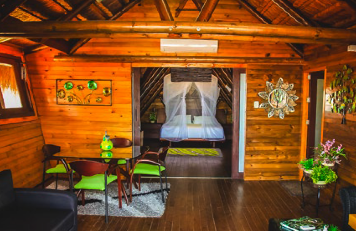 Diseño Rústico: El interior de la habitación Chalet presenta una decoración cálida y rústica, con madera natural, piedra y detalles de diseño que evocan la sensación de estar en una cabaña en medio de la naturaleza.